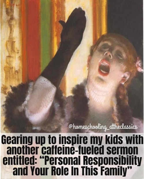 HOMESCHOOL CLASSICS: “It shall be long-winded and self righteous. But if they didn’t want this particular performance then they shouldn’t have left toothpaste in the sink.” (I saw this on FB.)