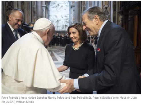 NANCY and FRANCIS: House Speaker Nancy Pelosi received Holy Communion at a Mass with Pope Francis. May God have mercy on both of them.
