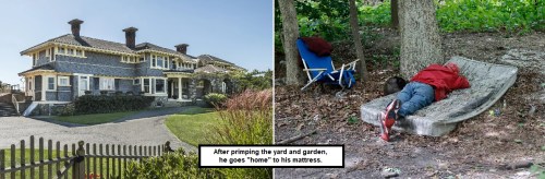 ELITE REALITY: This is a snapshot of what they want for the whole world. It’s basically the worst kind of feudalism writ large. – The Hamptons is an area on the east end of Long Island populated by mega wealthy celebs like Jerry Seinfeld, Billy Joel and Jay-Z and Beyoncé. They like their places to look good, inside and out, but they don’t like paying for it. So they hire illegals off the books and pay them too little to afford their own housing. Westhampton Beach resident Gina Webster, whose home is near woods that hide one of the encampments, said the situation was an open secret among residents. “It’s the Hamptons and we like to pretend real-life problems don’t exist here.”