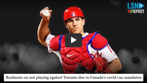 VAXXX: Philadelphia Phillies catcher J.T. Realmuto has been barred from playing games in Toronto due to his vaccine status. He is standing by his decision to reject the shots, saying that he’s “not going to let Canada tell me what to put in my body.”