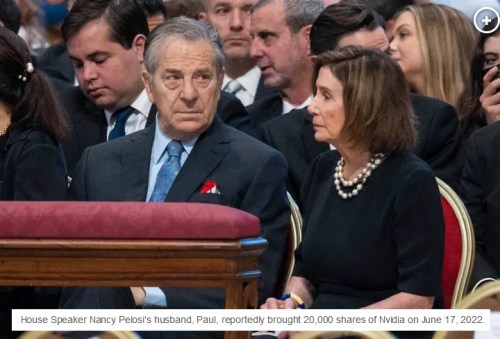 PELOSI: On June 17, 2020, House Speaker Nancy Pelosi’s husband, Paul, bought 20,000 shares in stock options on a computer-chip company. Next week, the Senate is expected to pass a bill setting aside $52 billion to boost domestic production of semiconductors and give tax credits for production.