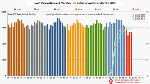 VAXXX: In many other parts of the world, live birth rates took a suddenly nose dive in January of 2022. The change started nine months after people of child-bearing age started to be vaxxxed. Igor Chudov noted that, in Germany, where nothing significant happened with abortion laws, the rate of abortions also declined, suggesting unplanned conceptions also declined.