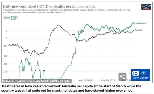MASKS: Both Singapore and New Zealand have ultra-strict mask mandates. Both have higher ‘rona case numbers per million than Australia, where compulsory mask rules have been abandoned in most indoor settings.
