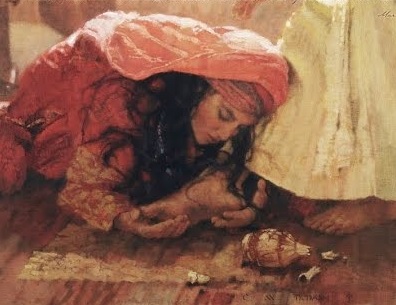 I also have a theory about why Mary actually broke the alabaster jar and used up all of the spikenard at the second anointing. A pricey jar of perfume is the kind of gift a well-to-do lover would give to a mistress he had no intention of marrying. Maybe he was a handsome Roman officer who either had a wife back home already or whose family had someone of good lineage picked out for when he got done with his military service. There was no way he would ever take a Jewess home to Mater, nor would he care what kind of life he condemned a discarded woman to after he dumped her.