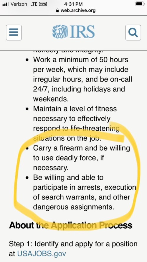 - https://notthebee.com/article/dont-panic-but-the-irs-is-now-advertising-jobs-where-you-must-be-willing-to-kill-your-fellow-americans-with-guns