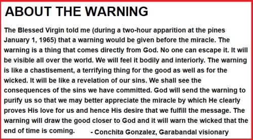 I recently watched a video in which the presenters seemed to believe that the Warning would not happen until the pope returned from Moscow. But I can’t find that in the message Conchita gave in 1965, which said, “The pope will go to Russia, to Moscow. As soon as he returns to the Vatican, hostilities will break out in different parts of Europe.”