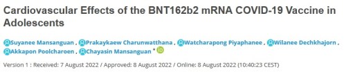 VAXXX: A not-yet-peer-reviewed study out of Thailand found about a third of the 314 teenagers (13-18) studied suffered suffered subclinical cardiovascular problems after receiving the Pfizer ‘rona jab. These included tachycardia, palpitation, chest pain, hypertension, myopericarditis, pericarditis and suspected subclinical myocarditis.