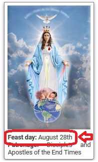 If you have been following my “Get yourselves prayed up, people” series, you’ll recognize instantly why I got goosebumps when I saw this information for the first time today. The feast of the Queen and Mother of the End Times is August 28, the same day as Elul 1. If you don’t know why that should be goosebumpy, read up at the links below.