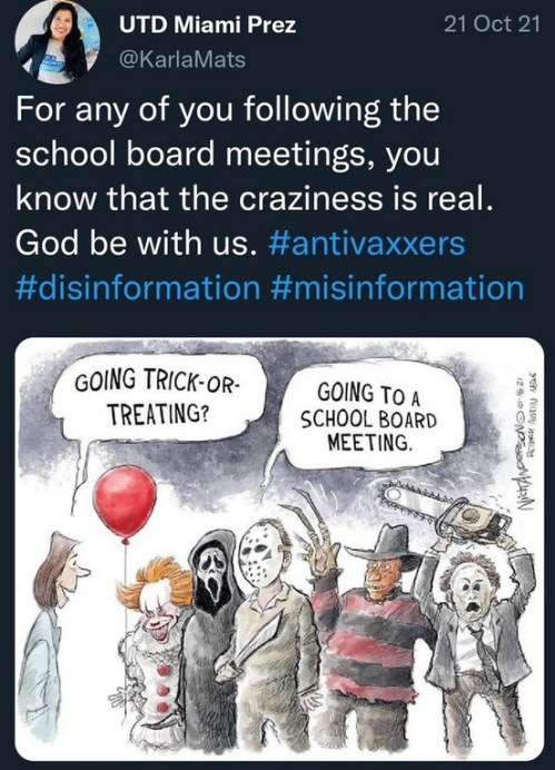 She fought to keep schools closed; her union actually hired a hearse to protest reopening schools. She also openly criticized parents who wanted schools to open and had them silenced at school board meetings.