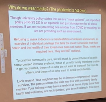 As for “ableism”, uhhh … this is actually an issue for me. I have a compromised immune system and I have been wearing an N95 mask in public since the 1980s. I do not expect anyone else to do so to protect me!