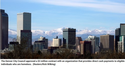 DENVER: The City Council has voted to dedicate $2 million toward giving more than 140 homeless people up to $1,000 in cash per month for up to one year. Part of the point is to get them to move out of homeless shelters and free up the space for other homeless people. Supposedly, they’re going to evaluate “housing outcomes, utilization of shelter and other homeless services, improvements in psychological health and substance use” for those who opt in.