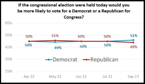 MIDTERMS: A Sept. 7-8 online survey of 1,885 registered voters found the same 1/3 results for all things Progressive that we’ve seen in other polls. I am continually reminded that 1/3 of the angels chose to revolt and are now serving their Dear Leader and, I’m guessing, these people.