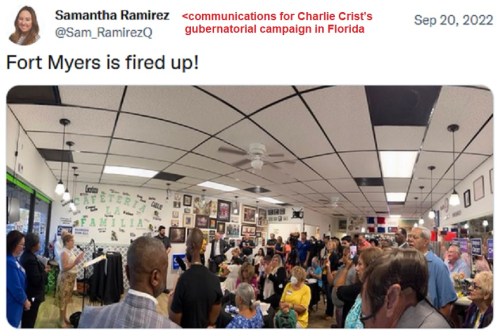 FLORIDA: Based on a ceiling tile count, that room is 12′ x 20′. IOW, a classroom for about 24 students at desks or 9-10 at lab tables. Ben Shapiro noted there were maybe 28 people there, with a solid chunk of them being campaign staff and media members.