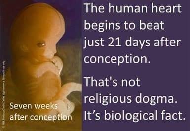 FETAL HEARTBEAT: Pro-life biology – “A preborn baby’s heart is actively beating at 6 weeks and will have already beat nearly 16 million times by 15 weeks. In fact, at 6 weeks’ gestation, the baby’s heart rate is about 98 beats per minute, which can be easily detected by ultrasound.” – Dr. Tara Sander Lee