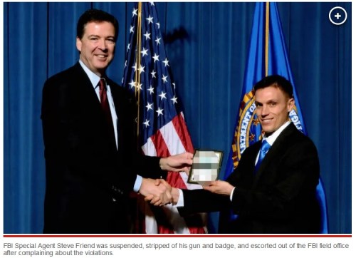 FACEBOOK: Steve Friend made a whistleblower complaint with the DOJ’s Inspector General about the FBI targeting Democrat political opponents. The FBI suspended him and now Facebook has suspended his wife’s account after she sent a message to someone who had asked if her husband needed support.