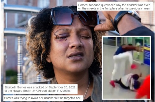 NYC: This is New York City’s “brand” – This woman may lose vision permanently in her right eye after a viciously violent nutcase assaulted her in a subway station. Subway crime is up 42% over pre-pandemic rates. In June, Mayor Adams said he was increasing police presence in the subway, but there was literally nobody patrolling or even monitoring that station when the assault occurred. Even more infuriating, the thug beat his 82-year-old foster grandmother to death in 1995 when he was just 14, and has since stabbed a woman in the face. He has also been arrested for assaulting a woman with a screwdriver, as well as for criminal mischief, robbery and larceny. But yeah … in the Rotten Apple, he’s out on the streets, free to take out his insane rage on a total stranger.