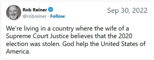 The Left has told us, loudly and often, that questioning the results of the Biden election is treason and that anyone who says Biden is an illegitimate president is an insurrectionist who threatens the very foundation of our democracy. I heard an exorcist say the Democratic Party is infested with a spirit of lying and hypocrisy. Rob Reiner is a case in point. Here are his tweets about Donald J. Trump’s election and administration: