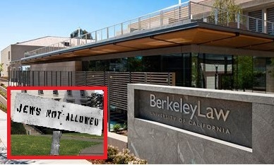 Now the School of Law has added “No Jews Allowed.” They began this new academic year by amending bylaws to exclude any and all speakers that support Israel or Zionism. Berkeley Law’s Dean Erwin Chemerinsky, a progressive Zionist, has observed that he himself would be banned under this standard, as would 90% of his Jewish students. But I’m quite sure that the divisiveness is entirely the fault of those stupid Jews who won’t stop their wrong-think so they can be all unity and peace with the tolerant Jew haters.