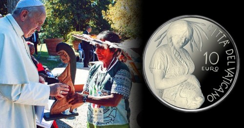 On October 16, 2020, on the Feast of St. Gerard Majella (the patron of expectant mothers!), the Vatican City State Mint issued a 10-euro Pachamama coin.