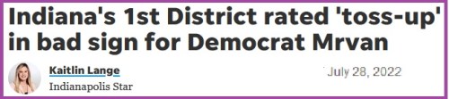 Mrvan was initially coasting on his D in the century-long Democrat stronghold; in May, Real Clear Politics showed him up by 7 points. Just two months later, the Indy Star called the race a toss-up, noting that, in the second quarter, Mrvan had raised just under $357,000, while Green had raised $626,000.