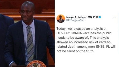 FLORIDA: On Friday, Florida’s Surgeon General Joseph Ladapo announced that the state’s analysis of COVID-19 mRNA vaccines showed that men aged 18-29 who got the jab suffered an 84% increased risk of cardiac-related death.