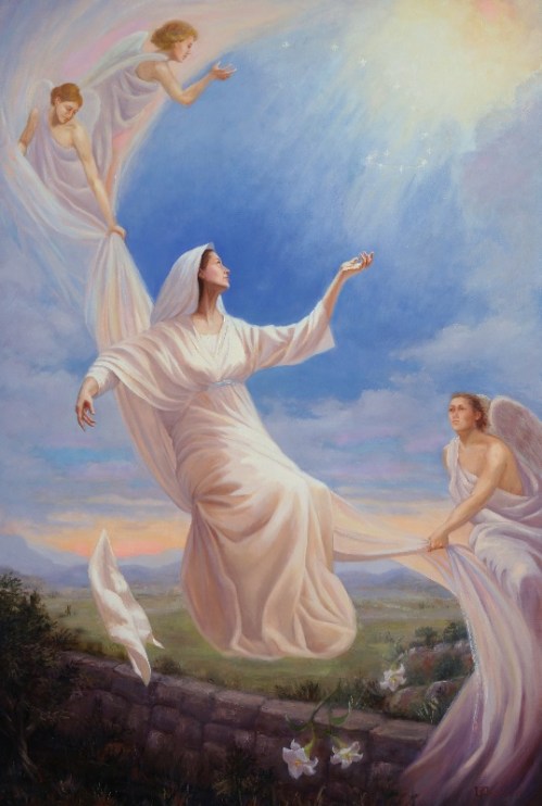 In the Middle East, the roofs of houses are walled and used as outdoor living spaces. When it’s hot, the family sleeps up there where it’s cooler. I often think that sometime after Mary went to live with John, they and their household were asleep on their roof when Mary was “changed in a twinkling” (1 Corinthians 15:51-53). Maybe there was even a trumpet that woke the others up, so they saw her glorified and taken up. But they would not have known if she died in her sleep or not.