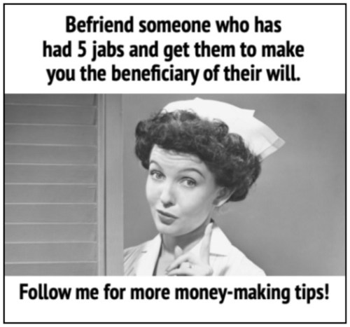 Apparently, huge profits doth more greed make. The ‘rona vaxxx costs $1.30/dose to manufacture. Prizer sold the poison to the feds for $19.50/dose (using our money, of course), so the feds could “give” it to us under threat of … well, you know.