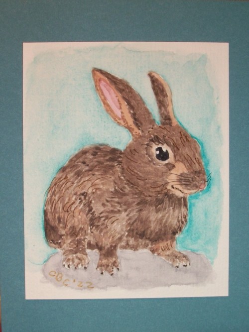 GRAMMY NOTES: I found some nice colored cards with matching envelopes to make greeting cards with my paintings. This is a birthday card for my bunny loving cousin.