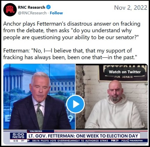 - https://notthebee.com/article/news-anchor-tries-to-give-john-fetterman-a-chance-to-fix-his-awful-answer-on-fracking-from-last-weeks-debate-somehow-fetterman-gives-an-even-more-confusing-answer
