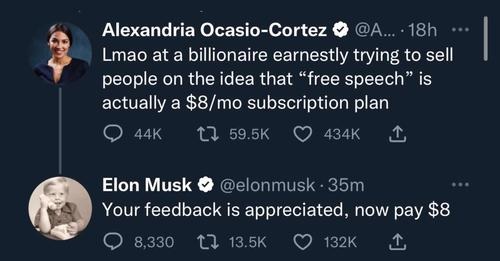 - https://www.bizpacreview.com/2022/11/03/elon-musk-is-having-fun-trolling-twits-about-8-a-month-blue-check-fee-and-not-just-aoc-1304158/