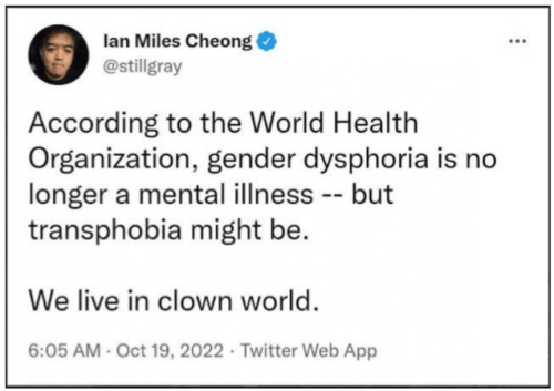 DETRANS: [10:54] – On Oct. 21, 2022, Andy Ngo interviewed Ritchie Herron, a 35-year-old gay man from Newcastle, England, who spent years on testosterone blockers and cross-sex hormones, then was pushed into bottom surgery by “gender-affirming” health professionals. He says “regret” isn’t a strong enough word to describe how he now feels about it all.