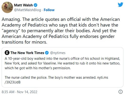 - https://notthebee.com/article/the-new-york-times-reported-on-a-mother-who-was-arrested-for-letting-her-boy-get-a-tattoo-quoting-an-official-who-says-children-dont-have-the-agency-to-make-sue-body-altering-decisions-hmm