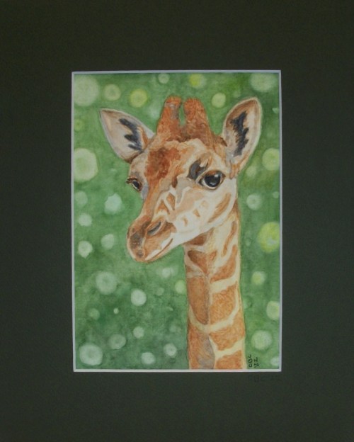 GRAMMY NOTES: Giraffes are my favorite wild animal, so naturally I’ve been longing to paint one for ages. I finally decided my skills were up to doing the subject justice. Photo reference by Denise McQuillen. Used with permission. N.b., the flash washed out the colors quite a lot.
