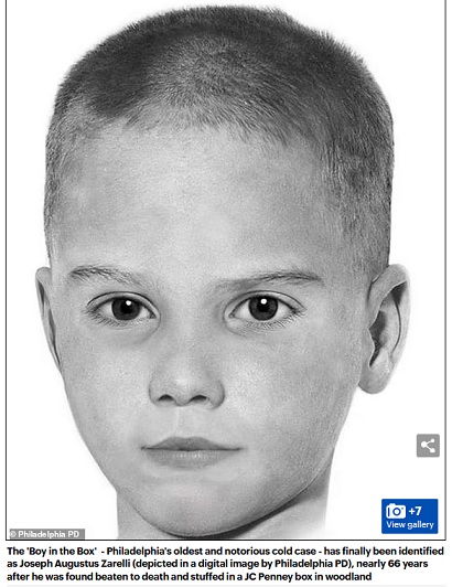 For six decades, Philadelphia’s famous “Boy in the Box” has laid under a headstone that simply says, “Heavenly Father, Bless this unknown boy.” Thanks to DNA genealogy, police have finally identified the 1956 murder victim as Joseph Augustus Zarelli. He was 4 when he was murdered.