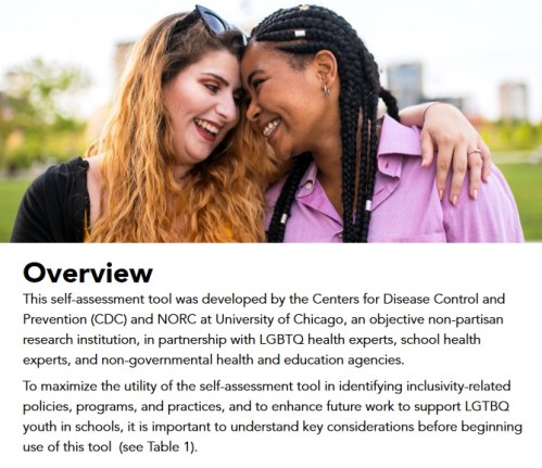 S&G: The CDC’s “LGBTQ Inclusivity in Schools” self-assessment tool is billed as “an educational resource designed to aid … to help schools enhance LGBTQ inclusive policies, programs, and practices.”