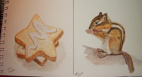 GRAMMY NOTES: Ordinarily, on such a skimpy day, I’d skip posting and fold the items into tomorrow’s post. But since I’m doing the 12 Days of Christmas, I’ll pad this out slightly by sharing my latest homework from Emily Olson’s Watercolor Mastery that Dearest and Mama Buzz got me for Christmas.
