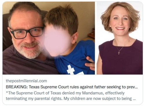 S&G: My heart breaks for this man. He fought so hard to save his son, but his whacko mother has won the right to take him to California and start him on life-altering puberty blockers. I can’t find anywhere that the kid got his own lawyer and an unbiased shrink to talk to him without either parent present and find out what he wants!