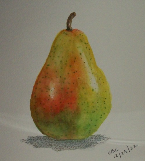 GRAMMY NOTES: No partridge, but I did paint this awesomely delicious looking pear!
