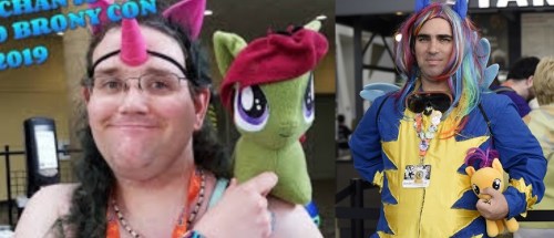 Speaking of creeps … in 2011, Blank founded BronyCon for adult My Little Pony fans, calling it a “men’s version of feminism.” The convention allegedly had a pedophilia issue cuz … no really! … who woulda thunk that guys who like to dress up as a little girl’s fantasy cartoon character might have something kinky going on in their pants?! Purple Tinker also reportedly stalked, doxxed, sent child rape porn, and threatened to murder another Brony for 2 years, all the while defending pedophilia and using meth.