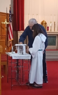 GRAMMY NOTES: I’m so proud of Bunny! She is training to be an altar server at Mass. She’s going to practice at daily Mass, then when she’s ready, get on to the Sunday roster.