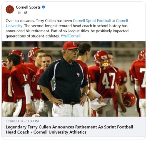 GRAMMY NOTES: My big brother is retiring after 45 seasons as head coach of Cornell’s Sprint Football team.