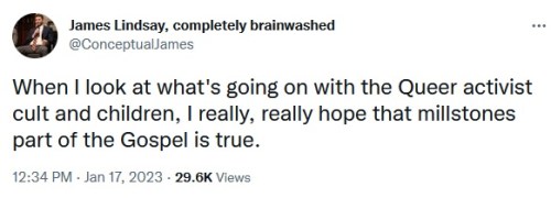 S&G: CLICK https://twitter.com/libsoftiktok/status/1615133689100505089 [:59] to hear a high school teacher smirk and giggle about how she promotes civic unrest in her classroom.