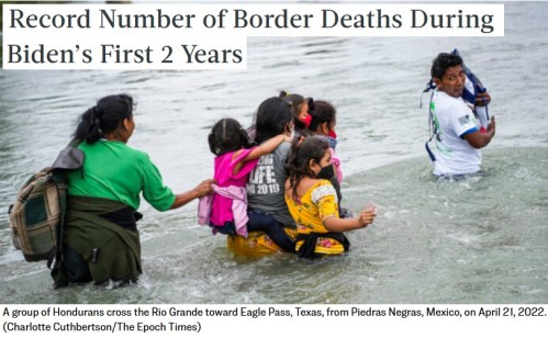 BORDER: During FY2021, 566 illegal migrants died at or near the border. During FY2022, that number jumped to 880. These are the highest numbers since data became available in 1998.