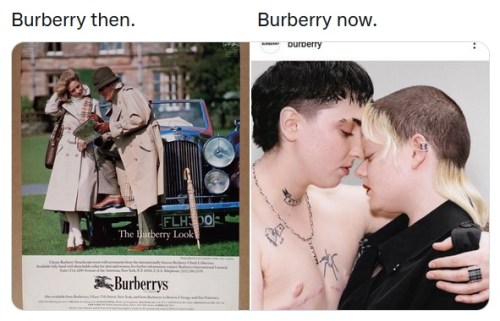 BURBERRY: The classic raincoat brand has gone woke. Dunno what about a girl’s mutilated breasts should make me want to buy a raincoat …