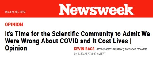 COVID-19: Check out what appeared in Newsweek, of all places. – “As a medical student and researcher, I staunchly supported the efforts of the public health authorities when it came to COVID-19. I believed that the authorities responded to the largest public health crisis of our lives with compassion, diligence, and scientific expertise. I was with them when they called for lockdowns, vaccines, and boosters. I was wrong. We in the scientific community were wrong. And it cost lives. … “