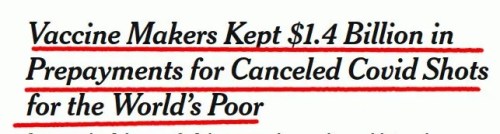 VAXXX: As news about how abysmal the jab is spreads, demand for the serums has waned. Drug companies are refusing to refund $1.4 billion in prepayments they received for vaxxx shipments that are no longer wanted.