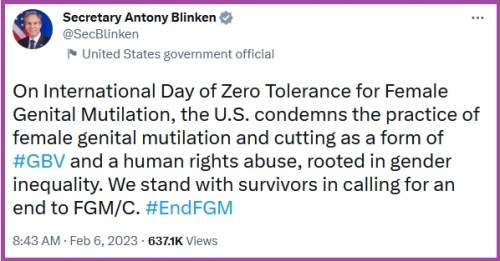 TOLERANCE: Biden Administration – Female Genital Mutilation by Muslims is EVIL and MUST STOP. Also Biden Administration – Female Genital Mutilation by Gender Affirming Surgeons must be promoted in schools and subsidized by tax dollars.