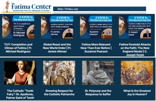 Fatima Crusader/International Fatima Rosary Crusade: The International Fatima Rosary Crusade (IFRC) is an association of Catholic priests and lay people dedicated to promoting the messages given by Our Lady at Fatima. Their site @ https://fatima.org/crusader-magazine/ promotes The Fatima Crusader magazine, which “is wholly dedicated to promoting devotion to and knowledge of the Message of Our Lady of Fatima.” The site also offers articles, videos, and podcasts, of which I included a representative selection in the graphic above.