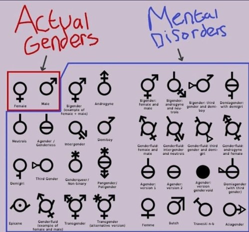 S&G: CLICK https://twitter.com/ClownWorld_/status/1629885564383285249 [:39] to have the so-called “non-binary” explained to you in ways that will leave you just as confused as ever. I’m taking a very binary approach to this subject; one, there is the truth (male and female only), and two, there are the disorders (anything else).
