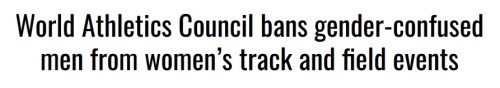 WOMEN’S SPORTS: The World Athletics Council (WAC) has voted to “fairness and the integrity of the female competition” over “inclusion.” The WAC is a powerful organization that serves as the governing body of the highest, non-Olympic track and field events on the planet. Many World Athletics champions go on to claim Olympic glory.